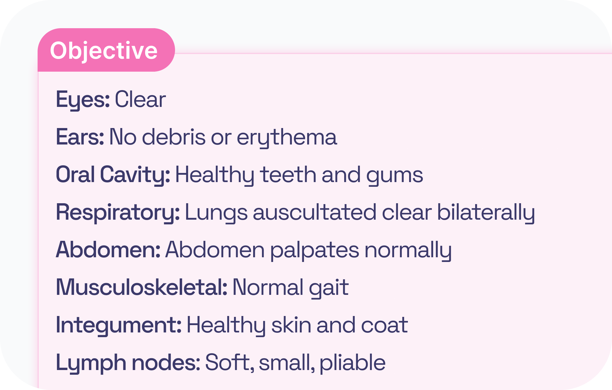 Personalize your Objective section by setting your own custom body systems.