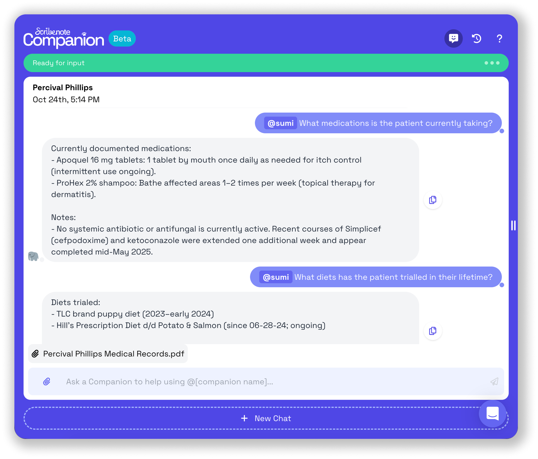 Upload a patient’s medical history (PDF), and Summi will quickly extract key details to get you up to speed.